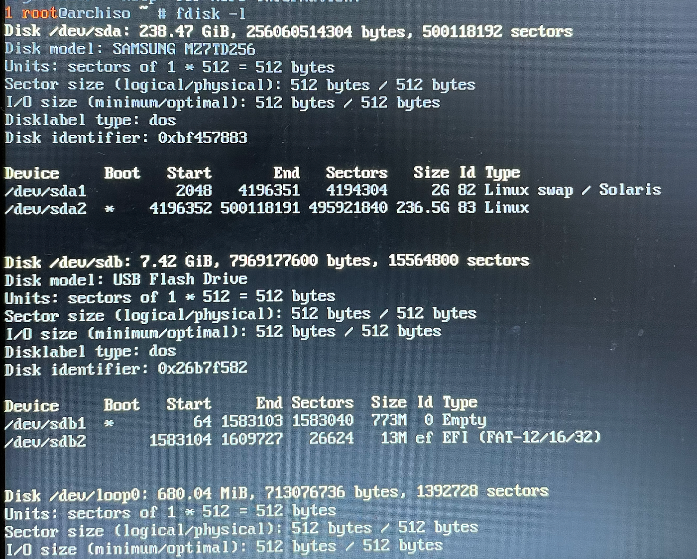 Here /dev/sda is my ssd and /dev/sdb is usb which is being used to install arch. We need to partition and format /dev/sda, for that